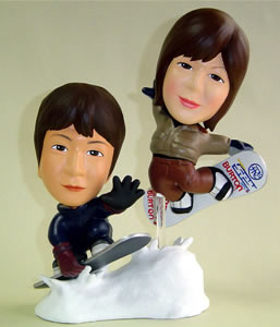 (上記製作例のお客さま御希望条件) ・スノーボードをしているポーズで製作して欲しい。 ・衣装は写真通りのウェアで。 |