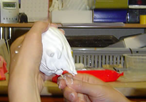 後頭部のパーツとお顔部分を合わせる形で盛り付けを行います。
